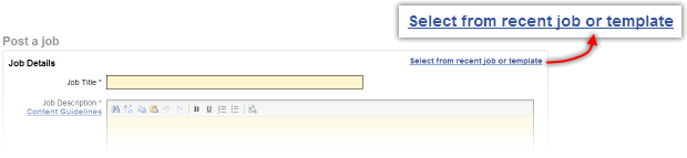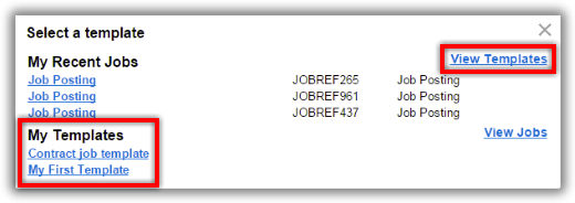 To use a template, go to the job posting page and click 'Select from recent job or template'.